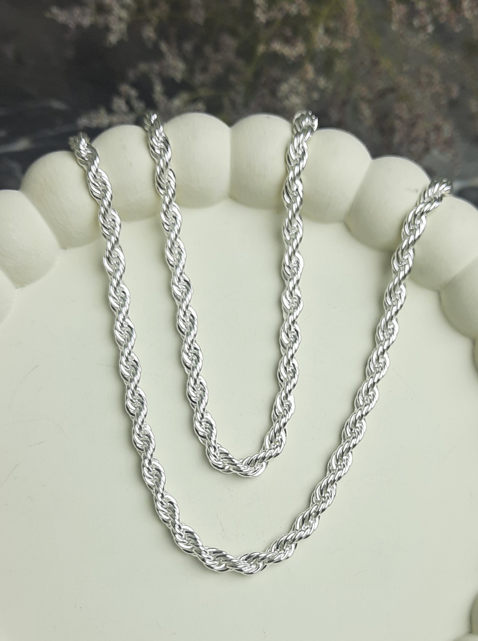 گردنبند پیچ آبکاری نقره پنجاه سانتی متر