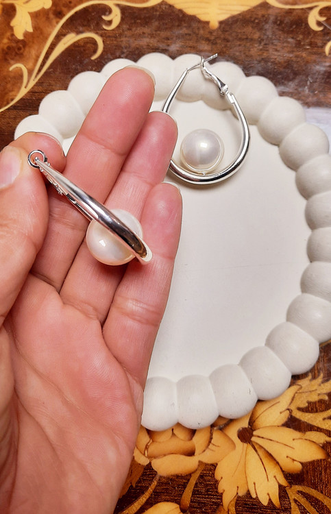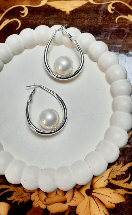 گوشواره حلقه ای مرواریدی آبکاری نقره رنگ ثابت
