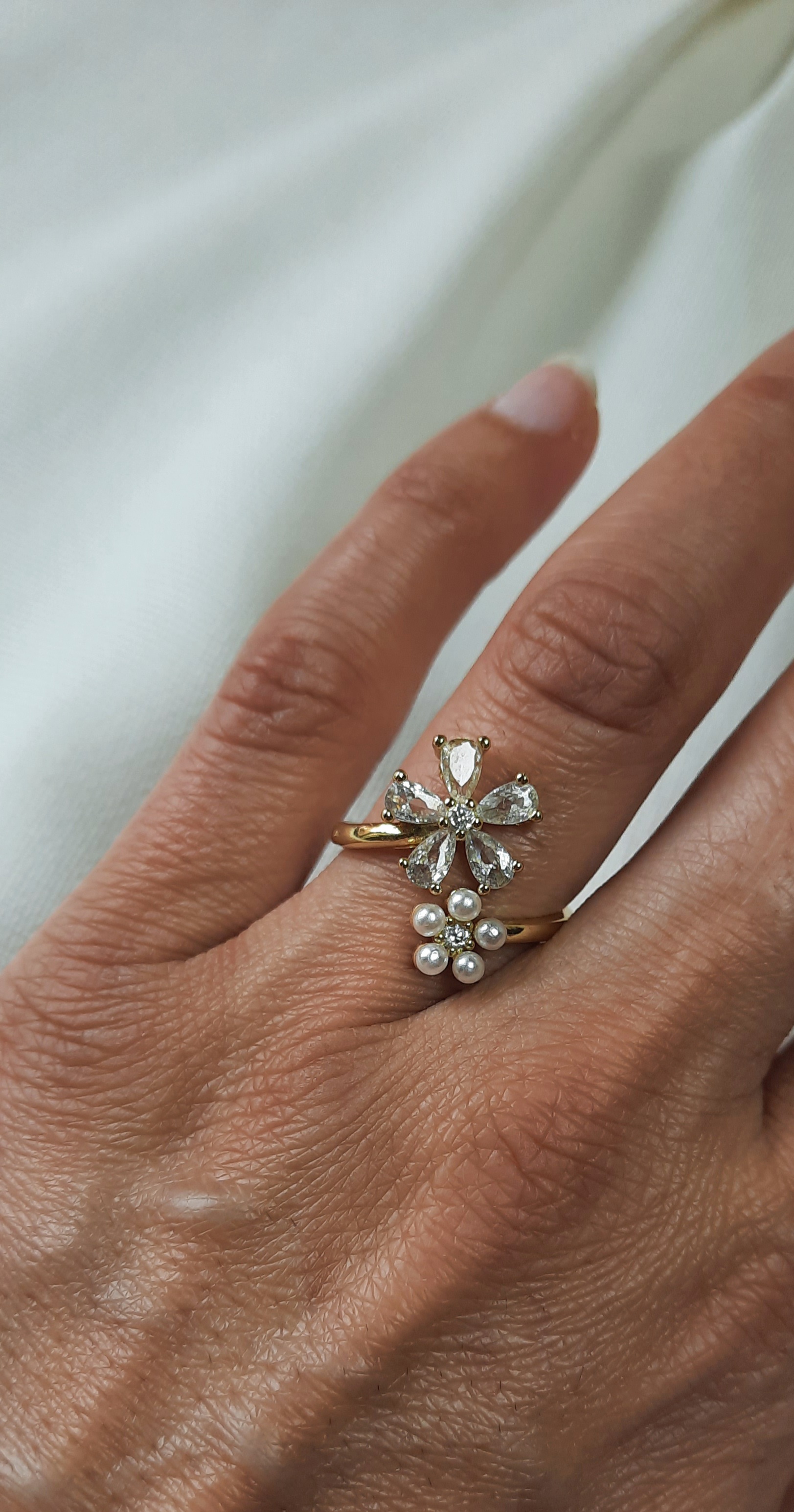 انگشتر فری سایز جواهری با مروارید و سنگ