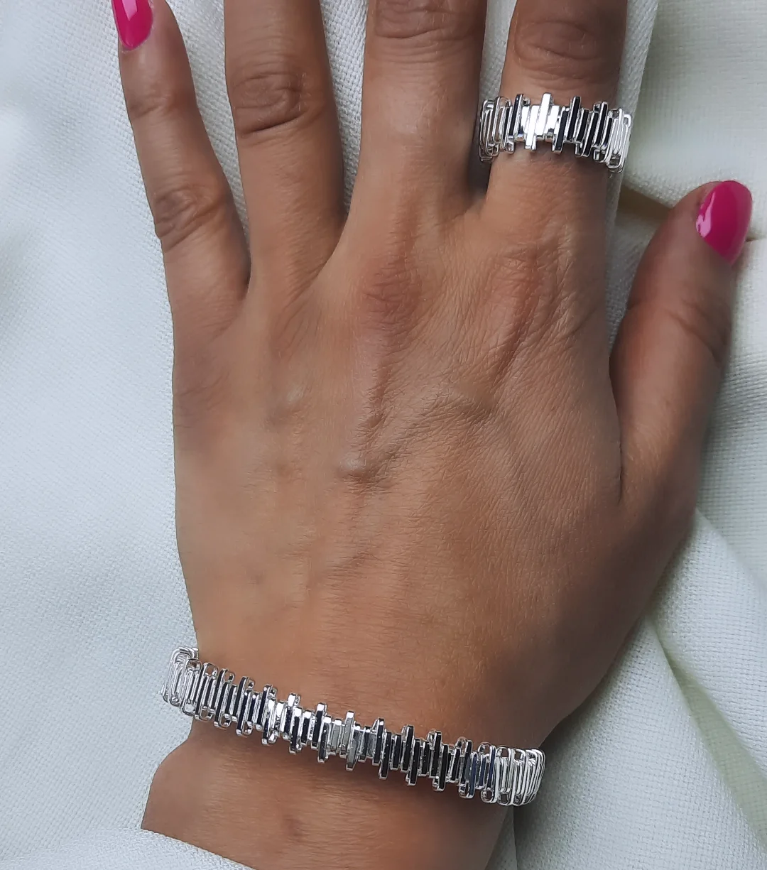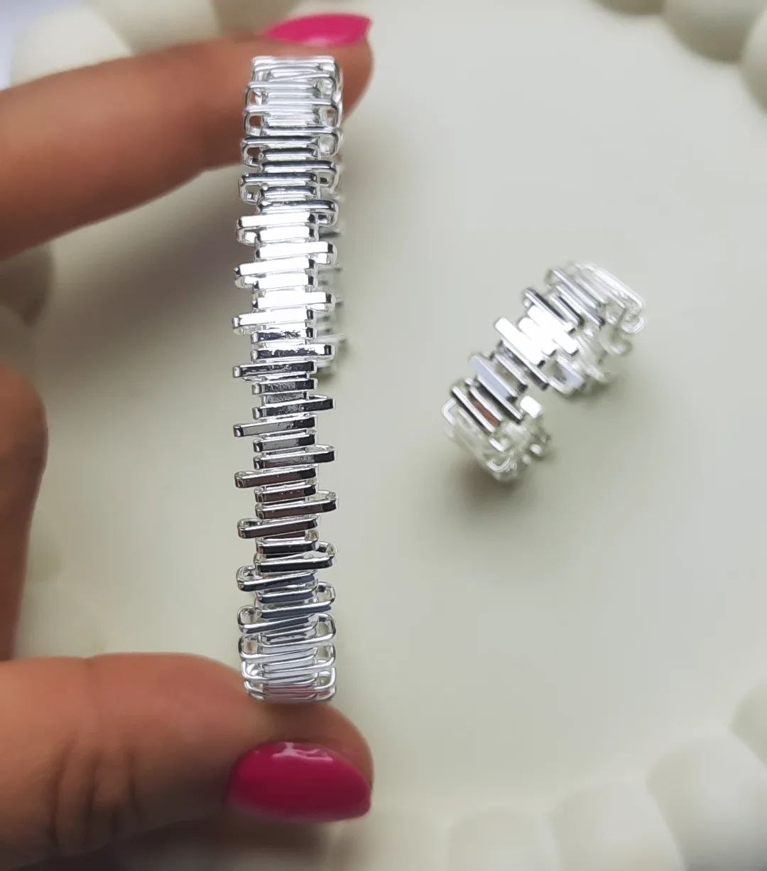 ست بنگل و انگشتر آبکاری نقره